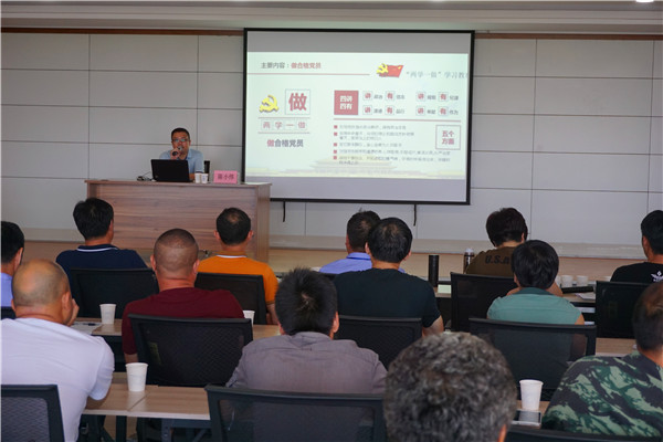 7月12日下午,作為工業(yè)集團(tuán)黨委委員,冶煉公司董事長(zhǎng)陳小偉到“兩學(xué)一做”學(xué)習(xí)教育聯(lián)系點(diǎn)金?;瘜W(xué)品市場(chǎng)講黨課。 在金海市場(chǎng)多功能廳,陳小偉通過“兩學(xué)一做”學(xué)習(xí)教育的背景、總體要求、主要內(nèi)容、主要措施等六大方面作了深入淺出的闡述,從不同角度對(duì)“兩學(xué)一做”學(xué)習(xí)教育進(jìn)行解讀,并對(duì)廣大黨員提出了新的要求,要求黨員同志不光要“學(xué)”,更要“做”,每位黨員要從思想轉(zhuǎn)變?nèi)胧郑瑥纳磉呅∈轮?,樹立黨員的先鋒模范作用,做一名合格黨員。 陳小偉強(qiáng)調(diào),金海市場(chǎng)要將“兩學(xué)一做”學(xué)習(xí)教育與實(shí)際工作相結(jié)合,充分挖掘市場(chǎng)內(nèi)部潛力,加強(qiáng)各方磨合、理順關(guān)系,不斷創(chuàng)新管理模式,加快標(biāo)準(zhǔn)化建設(shè),推進(jìn)管理全面提升,運(yùn)用各種載體、強(qiáng)化宣傳力度,擴(kuò)大市場(chǎng)影響力。要把握環(huán)境、靈活運(yùn)作、尋求多元化發(fā)展,繪就市場(chǎng)發(fā)展新篇章,努力使全體黨員干部保持昂揚(yáng)向上的干勁,勇于擔(dān)當(dāng),真抓實(shí)干,為金海公司的發(fā)展做出新的貢獻(xiàn)。
