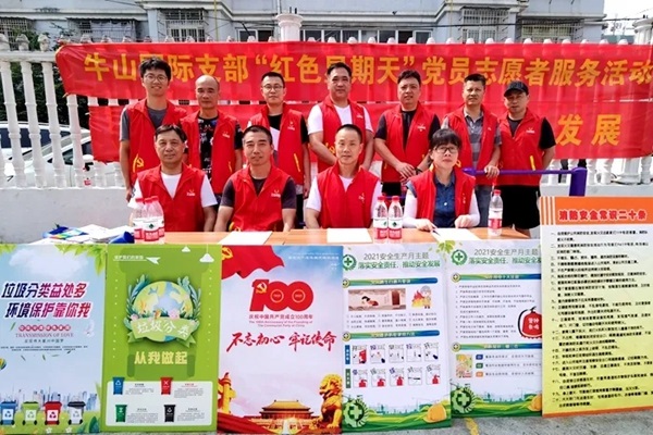 為迎接中國共產(chǎn)黨成立100周年,6月27日上午,牛山國際黨支部組織開展“紅色星期天”黨員服務(wù)進(jìn)社區(qū)活動,在南郊街道德政小區(qū)開展以“落實(shí)安全責(zé)任,推動安全發(fā)展”為主題的黨員志愿者服務(wù)活動。