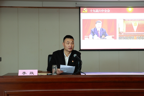 隨后,李政同志作“黨的十九屆六中全會” 專題黨課宣講,從四個歷史時期和四個偉大飛躍為起點,概述我黨百年風雨歷程,回答百年奮斗特點。同時提出旗幟鮮明講政治、集中力量辦大事、自我革命葆活力等3點思路,并帶領全體黨員積極響應十九屆六中全會的號召,為實現(xiàn)第二個百年奮斗目標、實現(xiàn)中華民族偉大復興的中國夢而不懈奮斗。