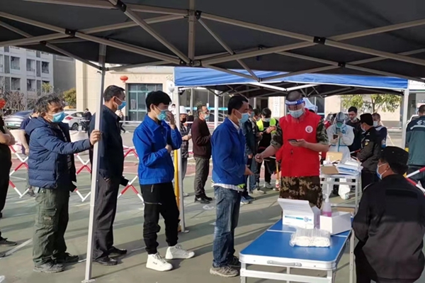 黨支部書(shū)記虞智勇迅速召集職工代表,召開(kāi)包聯(lián)工作部署會(huì),成立包聯(lián)社區(qū)下沉工作組,第一時(shí)間與聯(lián)社干部取得聯(lián)系,并組織人員趕往永興街道南園社區(qū)支援疫情防控工作。工作組到達(dá)社區(qū)后,立即根據(jù)社區(qū)實(shí)際需要安排人手協(xié)助做好核酸檢測(cè)點(diǎn)秩序維護(hù)、卡口防疫碼檢查、后勤服務(wù)保障等緊急任務(wù)。在“紅馬甲”們的共同努力下,社區(qū)現(xiàn)場(chǎng)秩序井然,社區(qū)居民排隊(duì)省心、出入放心、檢測(cè)安心。
