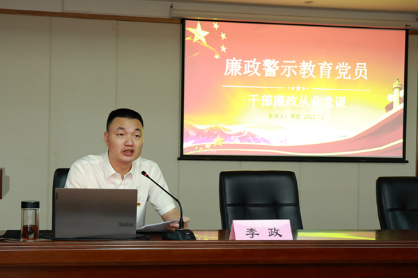 隨后,黨委書記李政為全體黨員上了一堂廉政專題黨課。從4個方面講述了認(rèn)清反腐倡廉、嚴(yán)守規(guī)矩、正風(fēng)肅紀(jì)的重要性和急迫性,一是認(rèn)識新形勢反腐敗斗爭的形勢,二是腐敗出現(xiàn)的原因和防范措施,三是學(xué)習(xí)廉潔法律法規(guī),防范廉潔風(fēng)險(xiǎn),四是增強(qiáng)黨員領(lǐng)導(dǎo)干部拒腐防變的能力。并對公司的黨風(fēng)廉政和反腐倡廉工作提出要求,在國企,不要想著賺大錢;做事情,以企業(yè)利益為先;要形成求真務(wù)實(shí)、清正廉潔的新風(fēng)正氣。