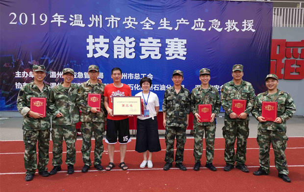 日前,由溫州市應急管理局、溫州市總工會主辦的2019年溫州市安全生產(chǎn)應急救援技能競賽在永嘉楓林消防基地舉行,來自各縣(市、區(qū))13支代表隊80余人參加競技比武。金海公司應急救援隊代表浙南產(chǎn)業(yè)集聚區(qū)管委會參賽并取得團體第三名的佳績。