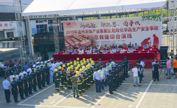 9月11日下午,2019年浙南產(chǎn)業(yè)集聚區(qū)危險化學(xué)品生產(chǎn)安全事故應(yīng)急救援綜合演練在金?;瘜W(xué)品市場舉行,浙南產(chǎn)業(yè)集聚區(qū)(經(jīng)開區(qū)、甌飛)管委會、市公安局經(jīng)開區(qū)分局、經(jīng)開區(qū)安監(jiān)局、消防分局、星海街道、金?;瘜W(xué)品市場危險化學(xué)品應(yīng)急救援隊等10余個部門(單位)200余人參加觀摩演練。