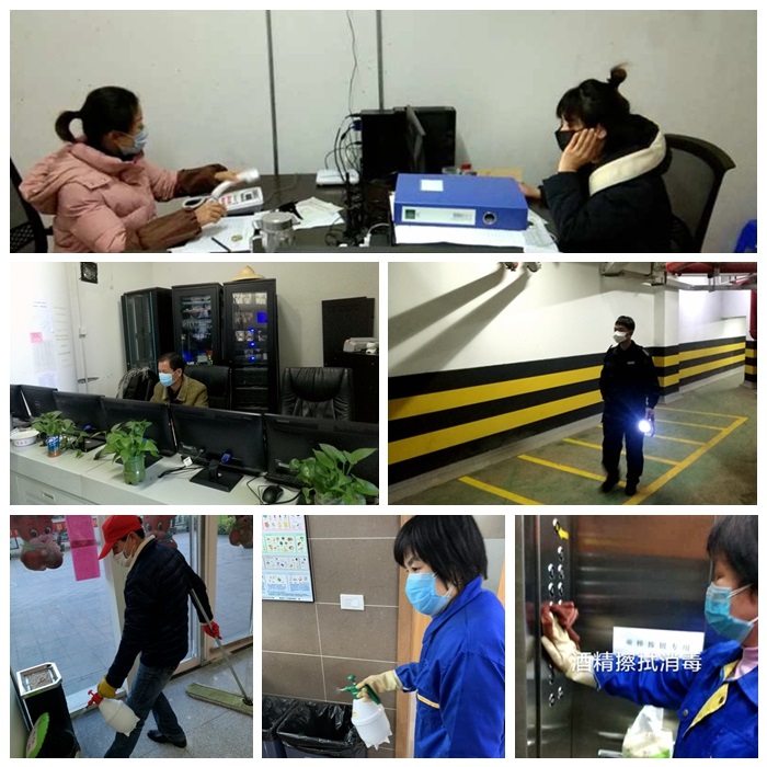 疫情防控阻擊戰(zhàn)中,還有不少溫冶物業(yè)人默默奉獻(xiàn)忙碌的身影。牛山商務(wù)大廈物業(yè)管理處的林西和周建蓮,每天撥打數(shù)十通電話,調(diào)查搜集大廈入駐商戶人員信息,做好人員排摸基礎(chǔ)工作;一日三餐只能以方便面充饑的保安人員,仍日夜堅守在崗位;保潔人員每天消殺面積數(shù)萬平方,渾身嗆鼻的消毒水味道、酸痛的胳膊是她們忙碌一天的“收獲”。