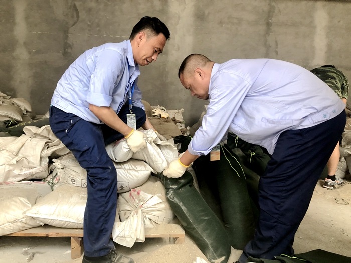 “紅潮行動”活動創(chuàng)建以來,后勤堡壘行動小組積極履行職責,全力做好金海公司后勤保障工作。近日,帶領部室黨員及黨團志愿者冒著酷熱,分組對沙袋進行填裝,拆袋、填充、壓實、綁緊、碼放,每一道“工序”都專人執(zhí)行、專人把關,保證每一包沙袋在關鍵時刻不掉鏈子。雖然一個個干的氣喘吁吁、汗流浹背,但始終阻止不了大家的工作熱情。經(jīng)過兩個多小時的努力,順利完成了5000多公斤防汛沙袋的填裝任務。一滴滴辛勤的汗水換來了一個個飽滿的沙袋,不僅表明了公司上下一心層層落實防汛工作的決心,也裝滿了大家對金海家園的熱愛。